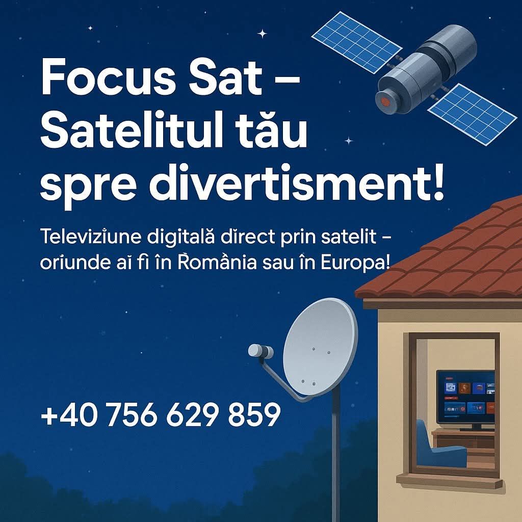 📡 Focus Sat – Satelitul tău spre divertisment! Televiziune digitală direct prin satelit – oriunde ai fi în România sau în Europa! Vrei televiziune de calitate chiar și în zone fără internet?Cu Focus Sat ai semnal oriunde – la munte, la țară sau în afara țării!Instalezi ușor, urmărești ce-ți place fără bătăi de cap.Comandă receptorul acum și bucură-te de libertatea televiziunii prin satelit!✅ Livrare rapidă oriunde ai fi💳 Preț avantajos 📲 Comandă acum: +40756629859